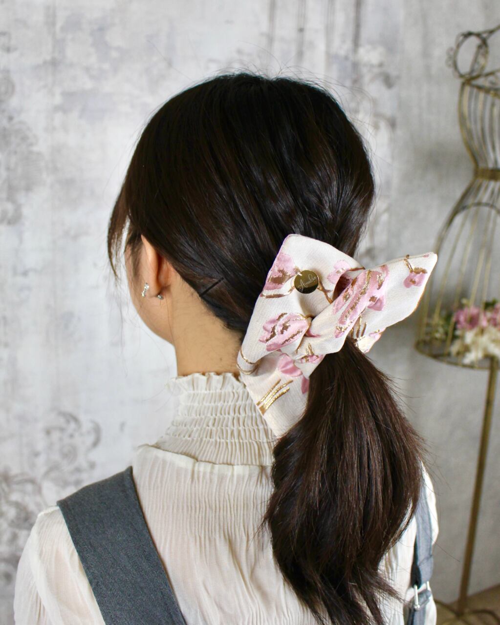 シュシュとして髪をまとめるのはもちろん、手首に巻いたりバッグに添えたりと、