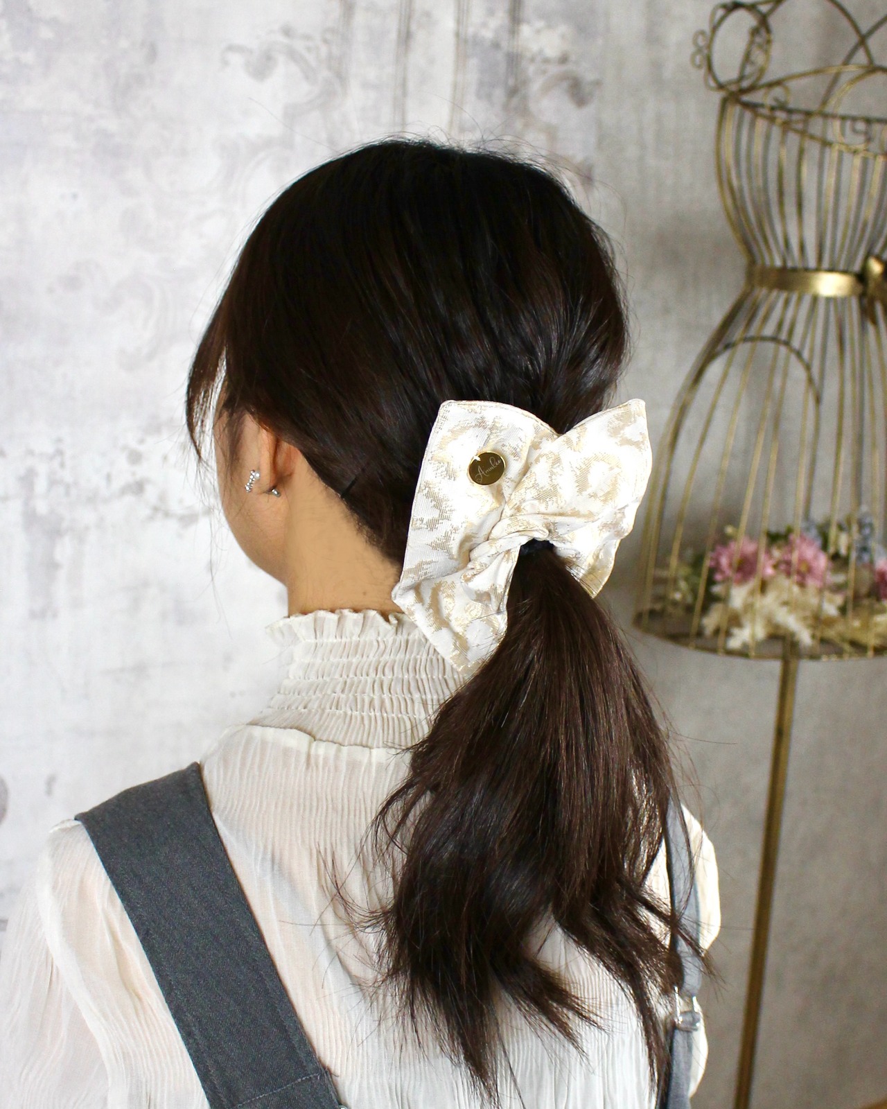 シュシュとして髪をまとめるのはもちろん、手首に巻いたりバッグに添えたりと、