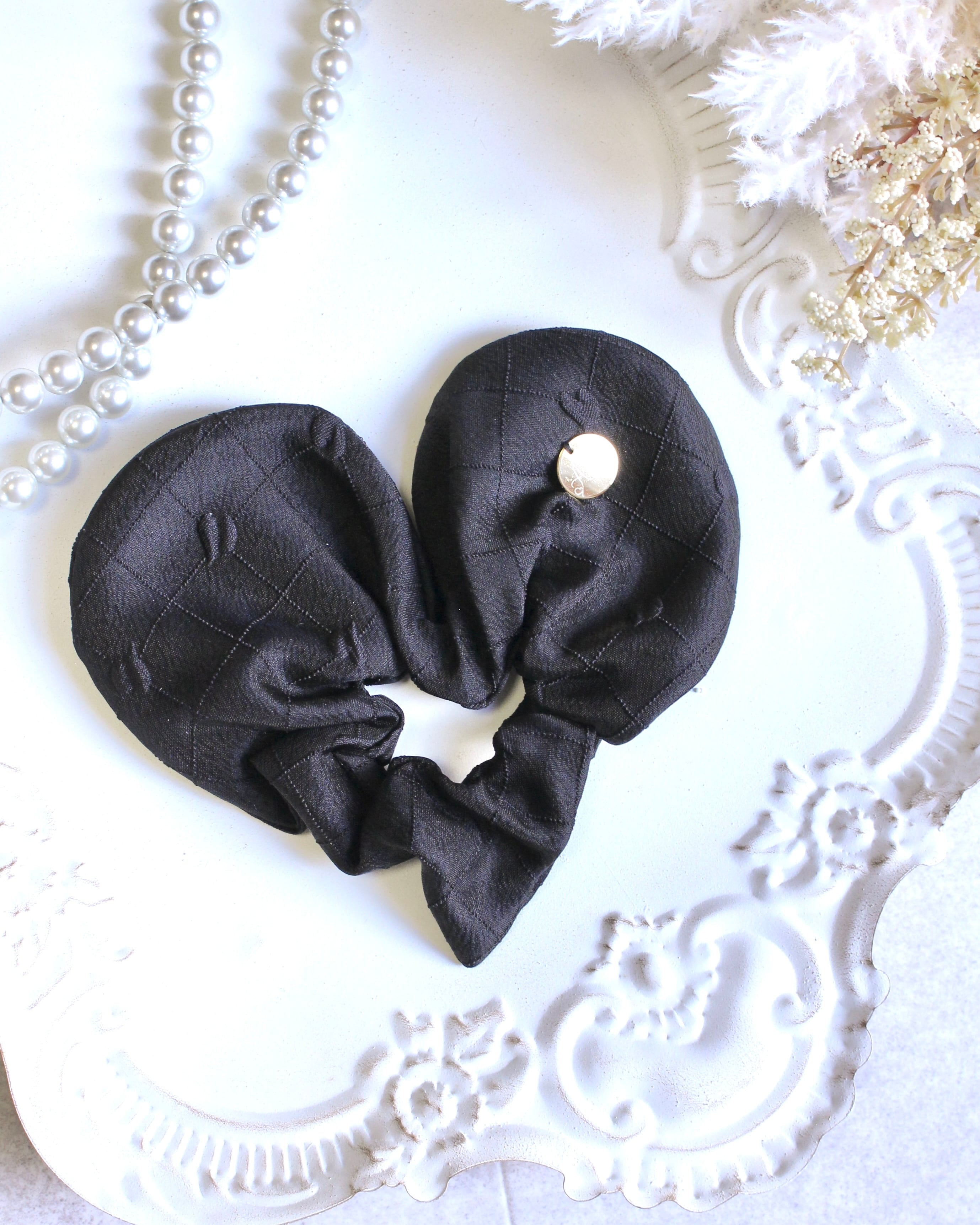 ハートシュシュ/ハート柄キルティング(ブラック)