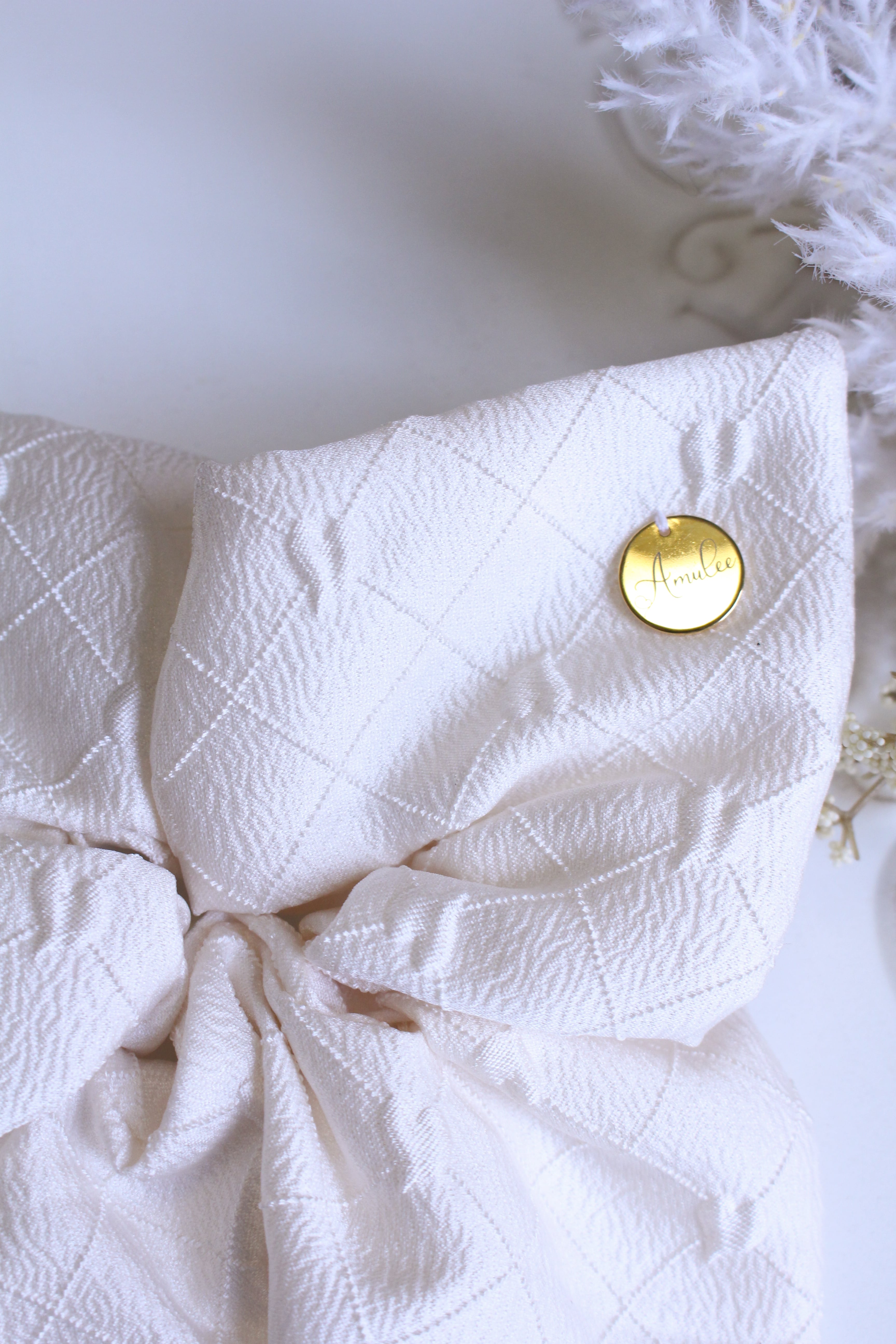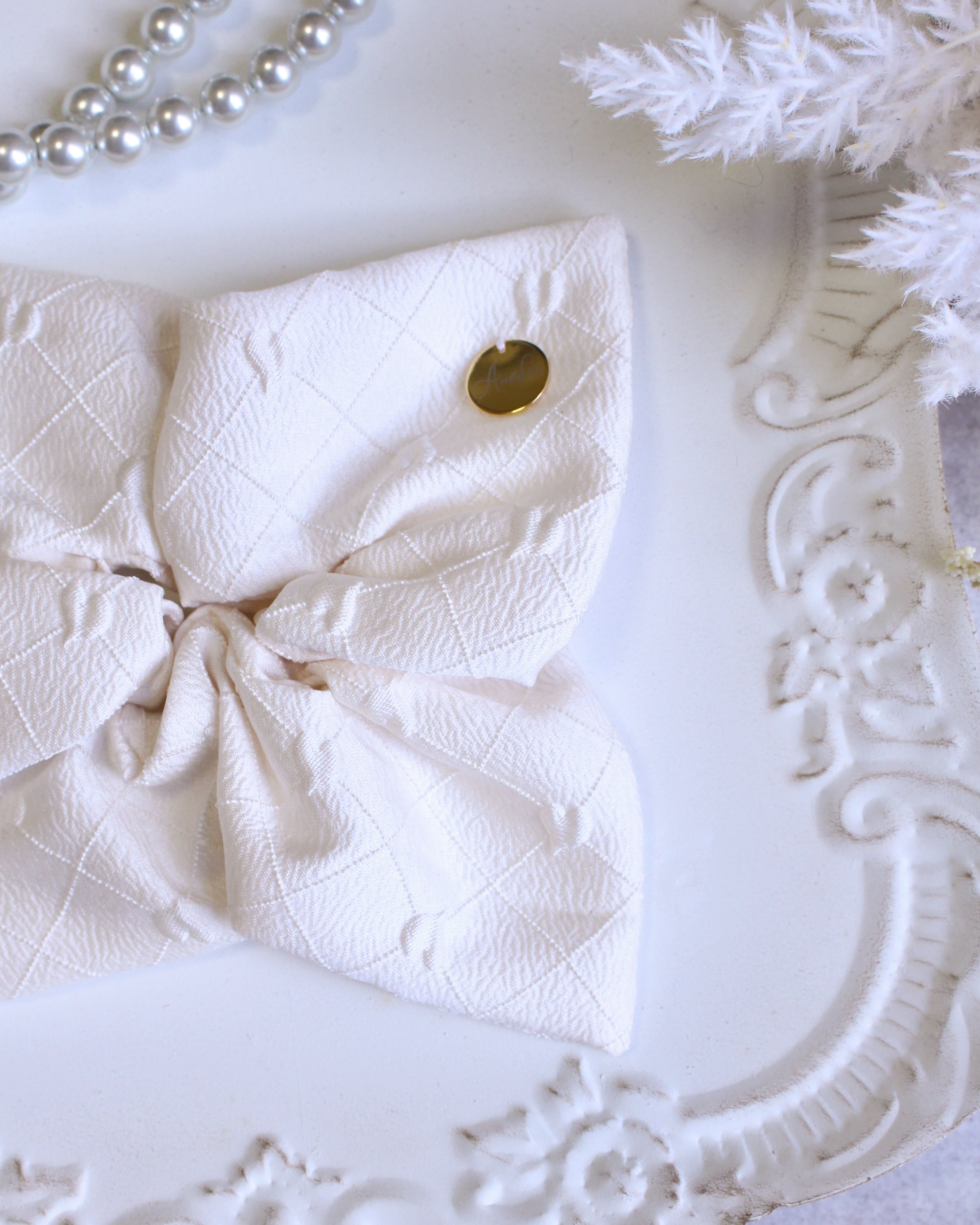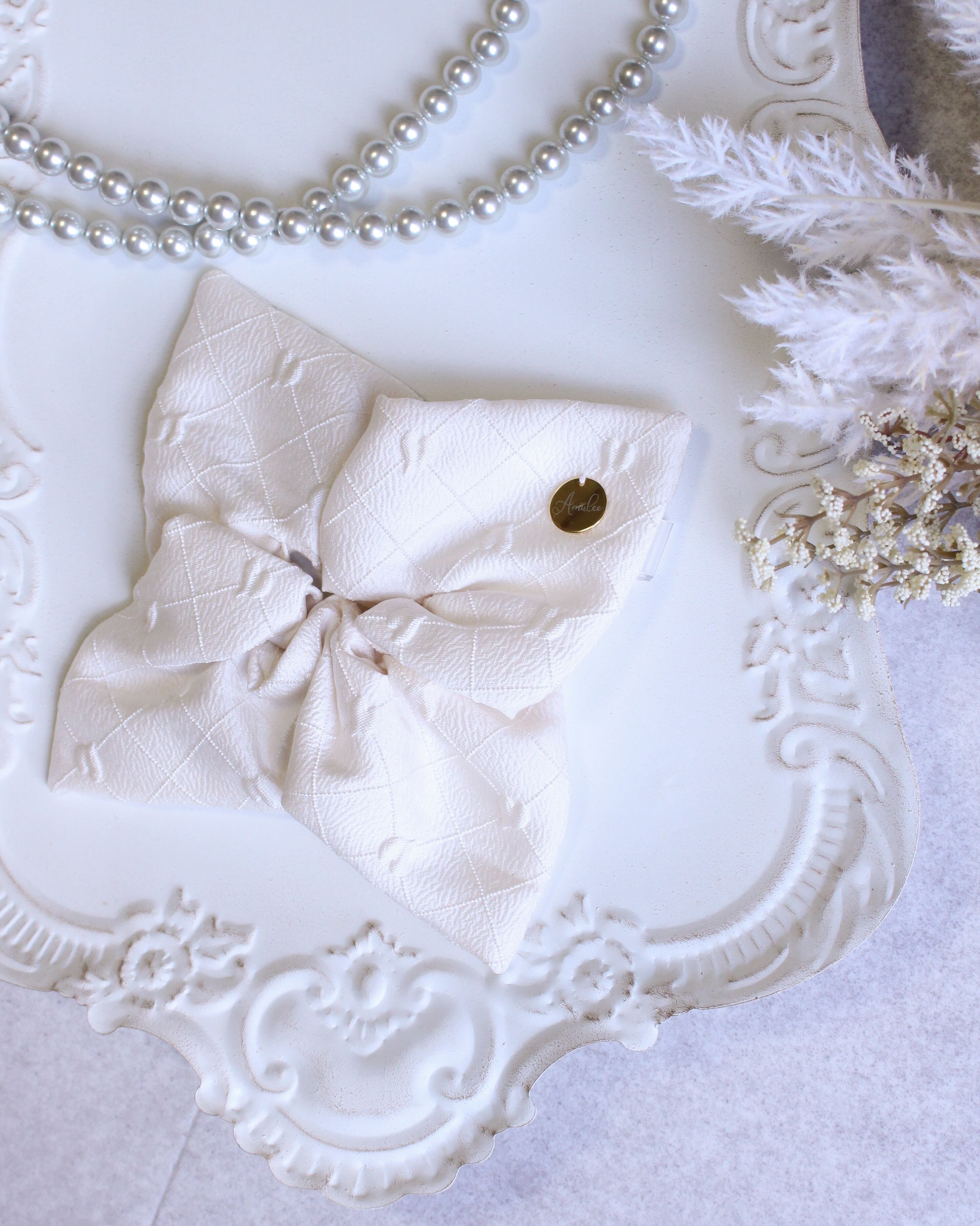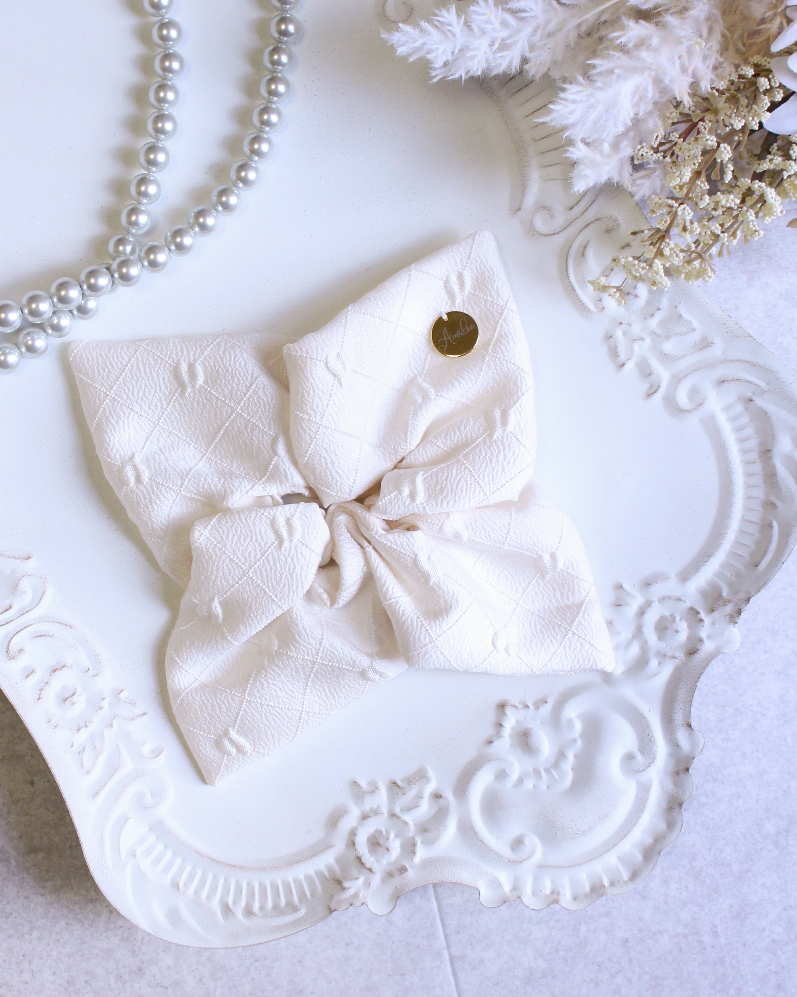 スクエアシュシュ/ハート柄キルティング(ホワイト)